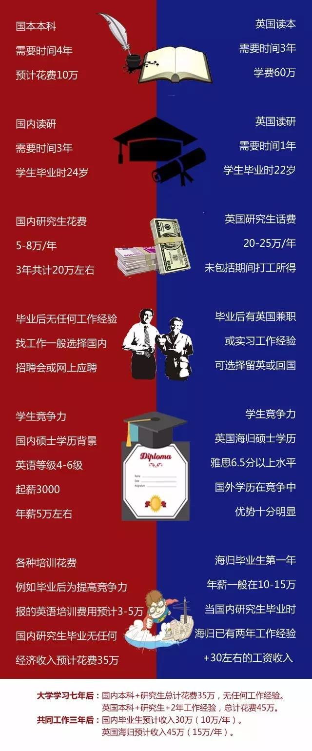 B爸爸:去英国学制短,3年本科+1年研究生,现在汇率也划算,一年20多万人民币。