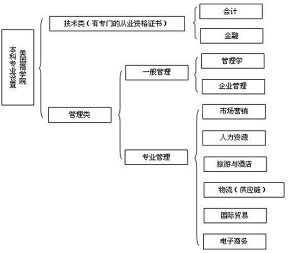 以下是美国商学院本科专业设置的简图。其中,旅游与酒店管理专业虽然更商科非常接近,但是往往设置在专门的学院下,比如康奈尔大学的旅游管理学院(School of Hotel Administration)。