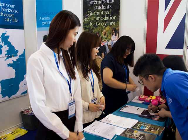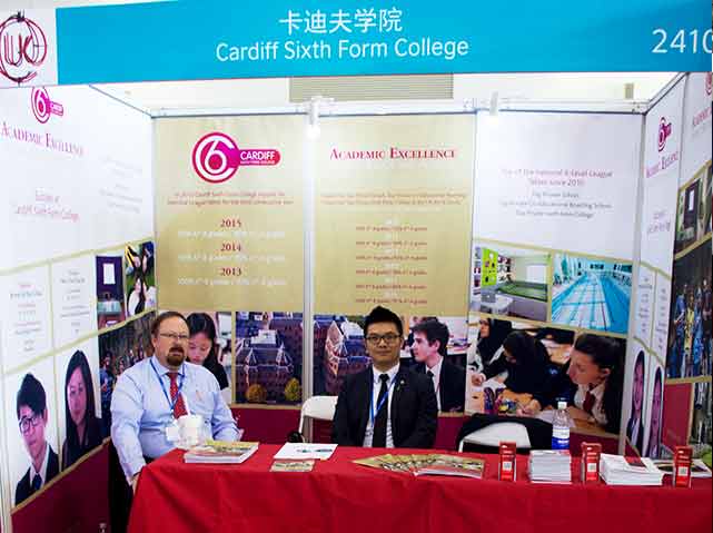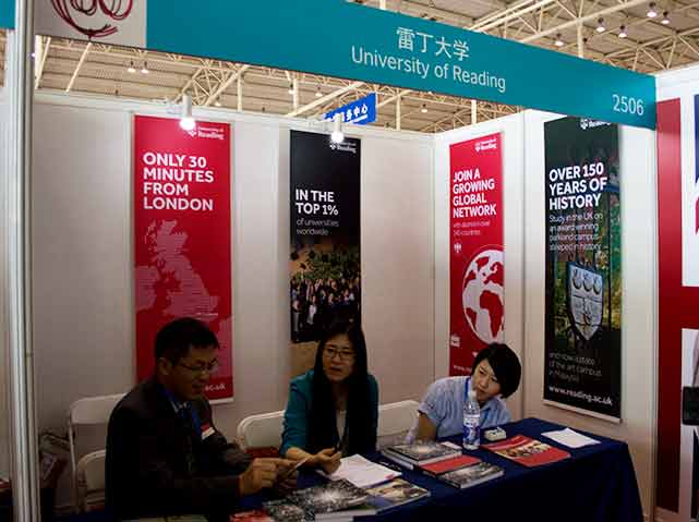 这次我们的顾问受雷丁大学、卡迪夫学院、利兹音乐学院邀请一同出展,所以就是中外联手合作来向前来问询的家长进行解答和介绍。