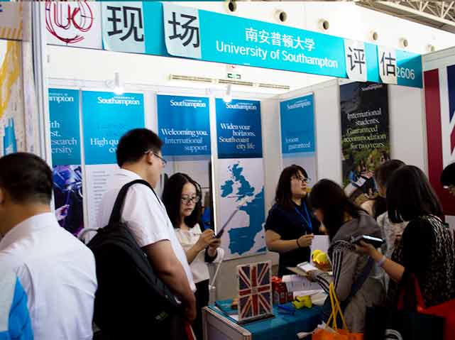 九点开始,有些家长开始入场了,顾问们马上和学校的招生官进入了工作的状态。这次的教育展也是非常的壮观,每个教学区都有着不同的展示风格。英国区只要看见米字旗大家都一副“你懂我懂”的表情,不需要打上“英国”两个大字。(当然小英还是有听到刚刚了解出国的阿姨指着英国旗说,“恩,这是新加坡。。。”额。。)虽然 英国和美国的展位算是最多的了,但是这次展位还是很丰富多彩的,法国、意大利、荷兰、瑞典、比利时、菲律宾、俄罗斯。。。是的,什么都有,尽管展位不多,但是全世界都在这里。我们也特意为前来参加国际展的家长们准备了冰红茶饮品,家长、同学们觉得很是贴心。这两天所有的出展人员忘记了时间忘记了吃饭,只要一有家长走到跟前,工作人员马上前去等待回答问题,也为家长提供可参考的选择和意见。在这里,感谢所有忙前忙后的工作人员,还有特意为了见我们顾问前来教育展的家长和学生们,我们一直会努力为大家服务,希望同学们和家长们能够放心地出国,放心地将孩子送出国!
