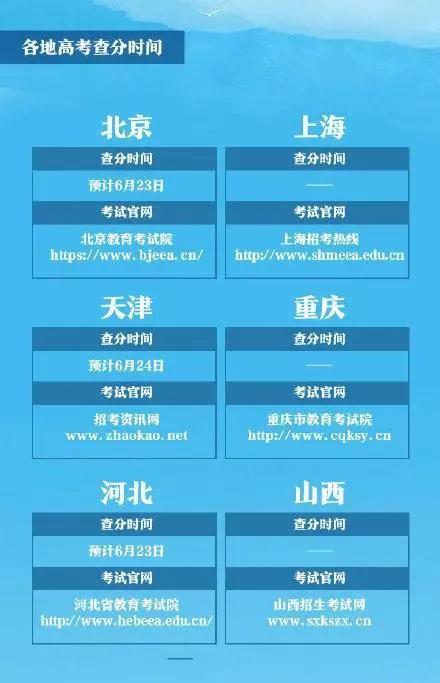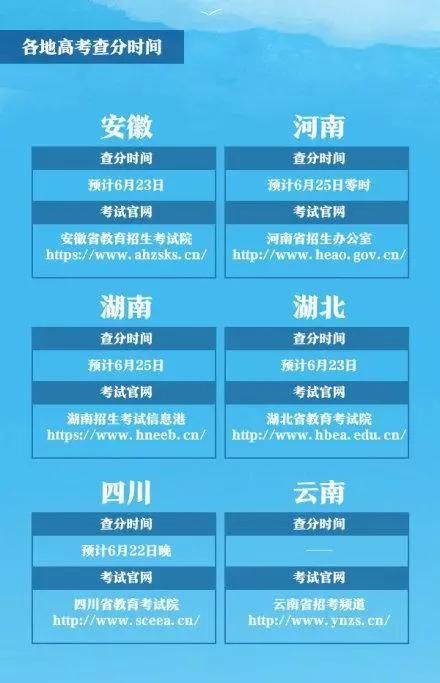 下面一起来看看各个省份公布高考成绩的时间吧!
