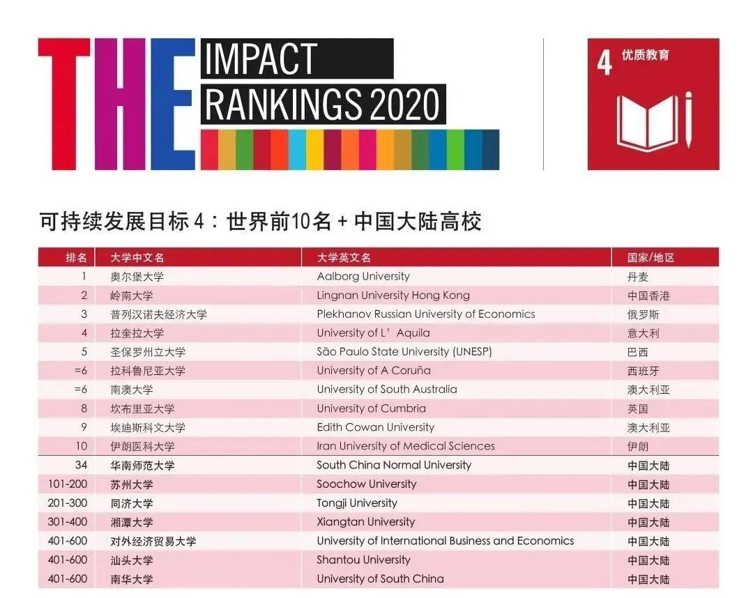 新标准!2020年泰晤士高等教育世界大学影响力排名出炉!