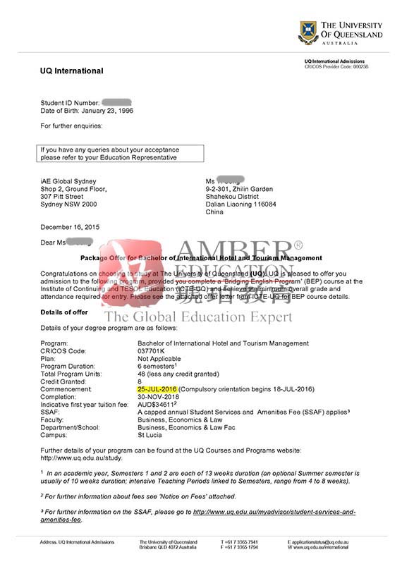 对于像陈学生这样获得Package Offer的学生需要注意的是,虽然已经获得了专业课的Offer,但是这个录取通知书是一个有条件的录取通知书,前提就是完成语言课程后,需要重新参加雅思考试,成绩达到专业课的语言要求后,才能顺利转入专业课。如果未达到专业课的要求,需要和学校沟通继续再学习语言课,延期专业课的Offer,同时需要更换COE。