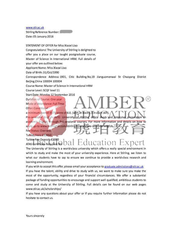 我出国留学更多的是想感受一下国外的环境和文化,如果只为了学习我在哪学都一样。真是幸运在琥珀遇到了一位懂我的顾问老师,我超级喜欢斯特林的校园,想到要在那么美丽的地方度过一年我都有想马上飞过去的冲动。