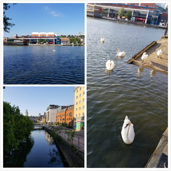还没走到酒店,就先和此行的目的地林肯大学相遇了,在运河两侧伫立着大学的教学楼,河上还有几只大白天鹅在戏水,河边有各国特色的餐厅,许多当地人已经开始了晚餐,河岸停靠着许多私人游艇,可以想象这里安逸闲适的生活。