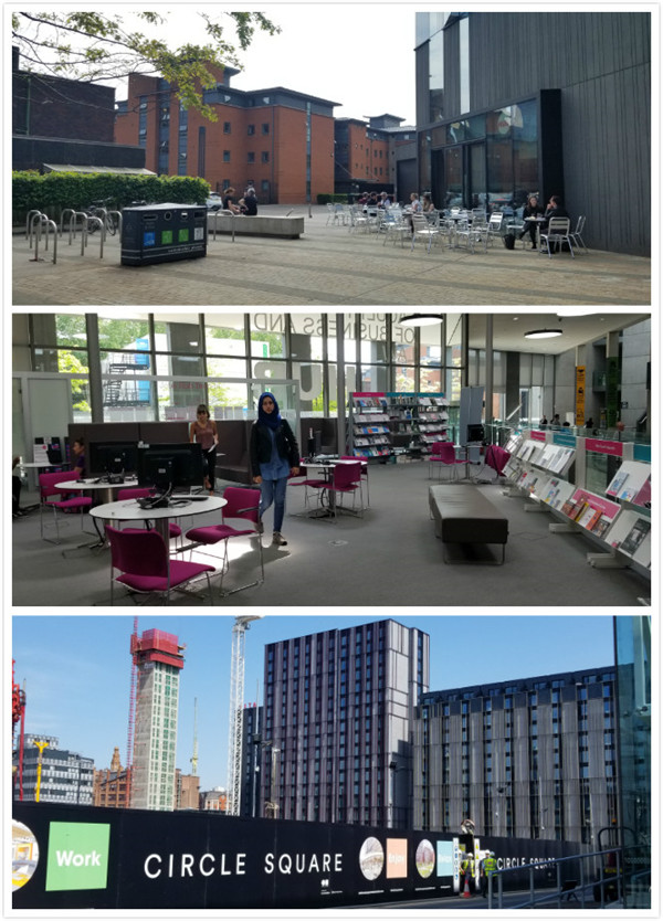 结束艺术学院的考察,招生办的老师带我参观了学校,由于位于牛津街,曼彻斯特城市大学和曼彻斯特大学、皇家音乐学院毗邻,充斥着浓浓的学术气息,校园间没有明确划分,俨然形成了开放的大学城,另外,曼彻斯特城市大学还和曼彻斯特大学有建筑的合作课程,排名全英第二,在两边学校授课,并颁发两所大学的学位证书。走在街上,和学生们擦肩而过,也很想跟着他们去图书馆上个自习呢。期间老师指给我看曼彻斯特城市大学还在建设的教学楼,可见学校还在不断发展壮大。健身房、宿舍楼也穿插其间,还看到了中餐馆!其实作为国际化的大城市,曼彻斯特聚集了来自世界各地的学生和工作者,中餐、日餐、欧陆各国的特色餐厅随处可见,即使不会做饭,胃也不会受到传说中黑暗料理的折磨。