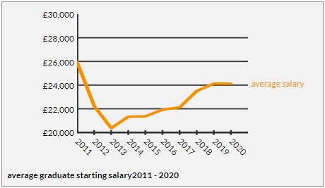 据调查数据显示,2011-2020 年英国毕业生的平均起薪为每年 £21,000-£26,000(约为人民币 19 万-23 万)。