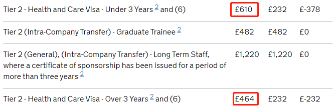 另外,如果申请人的是短缺工种里的医护岗位(Shortage Occupation - Health and Care),签证申请费用也有同等程度的“折扣”:3年内签证232英镑,3年以上464英镑,通通一口价!